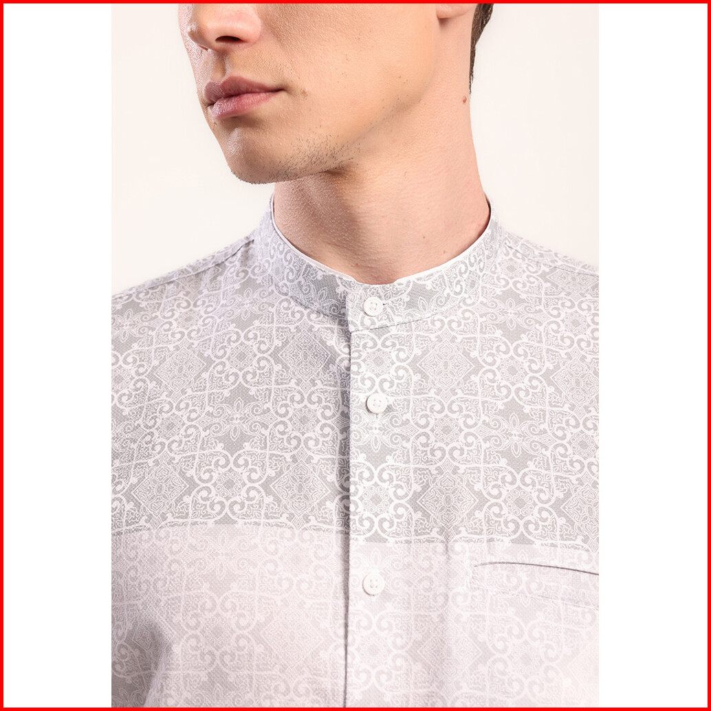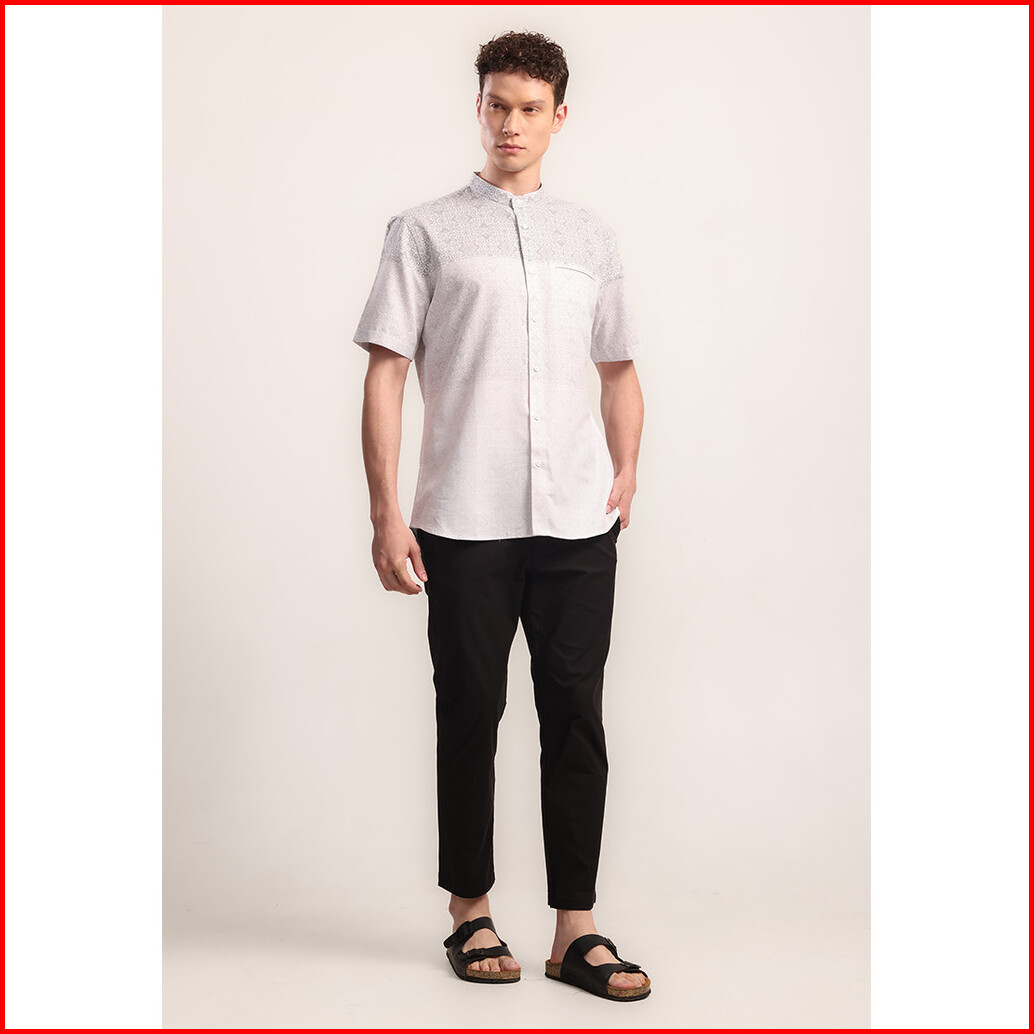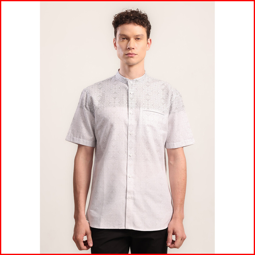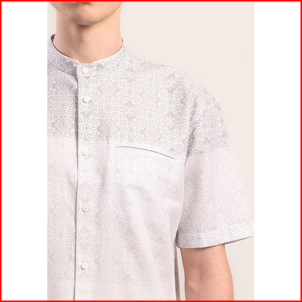 Moc Kemeja Koko Lengan Pendek Pria Ikram - Grey