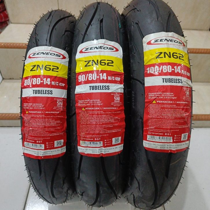 BAN MOTOR RING 14 TUBELESS / BAN TUBLES ZN62 ZENEOS 80/80-14 90/80-14 100/80-14 ORIGINAL 100%