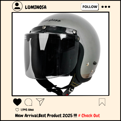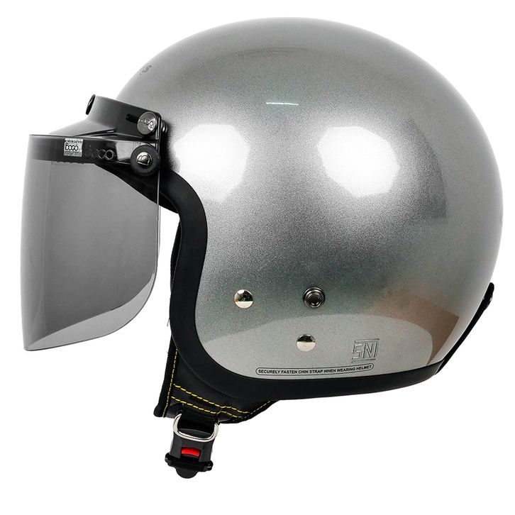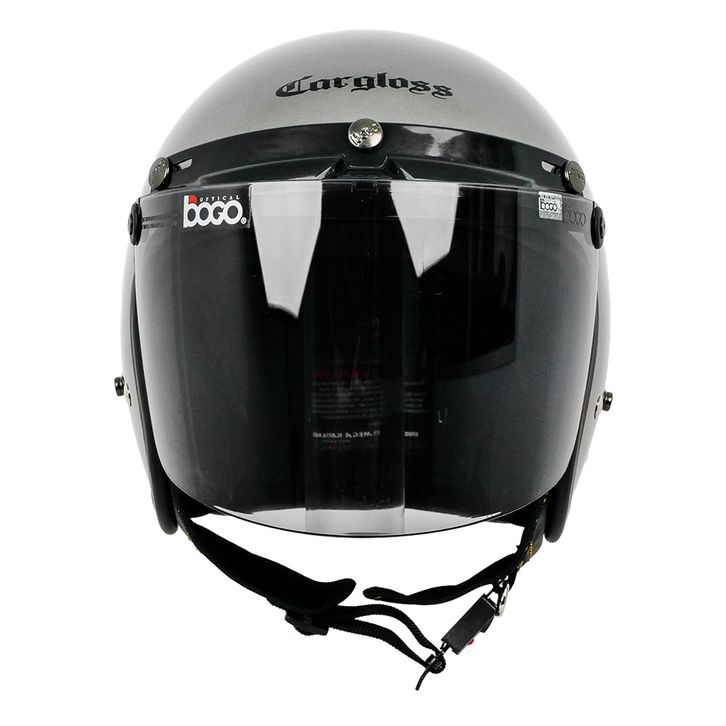 Cargloss CFM Retro Visor Flat Smoke Helm Half Face - Silver Met Gloss