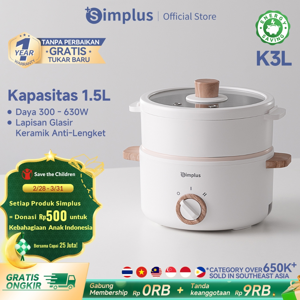 [Mall]Panci Listrik - Kukusan Serbaguna - Panci Electric Pot Low Watt - Lapisan Keramik Anti Lengket 2 Tingkat - sgb11