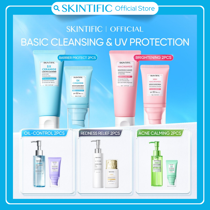 SKINTIFIC 2pcs Set | 5X Ceramide Sunscreen 30g + Low pH Facial Wash Sabun Cuci Muka 80g - Skintific Official Store Mall