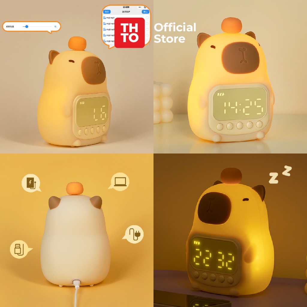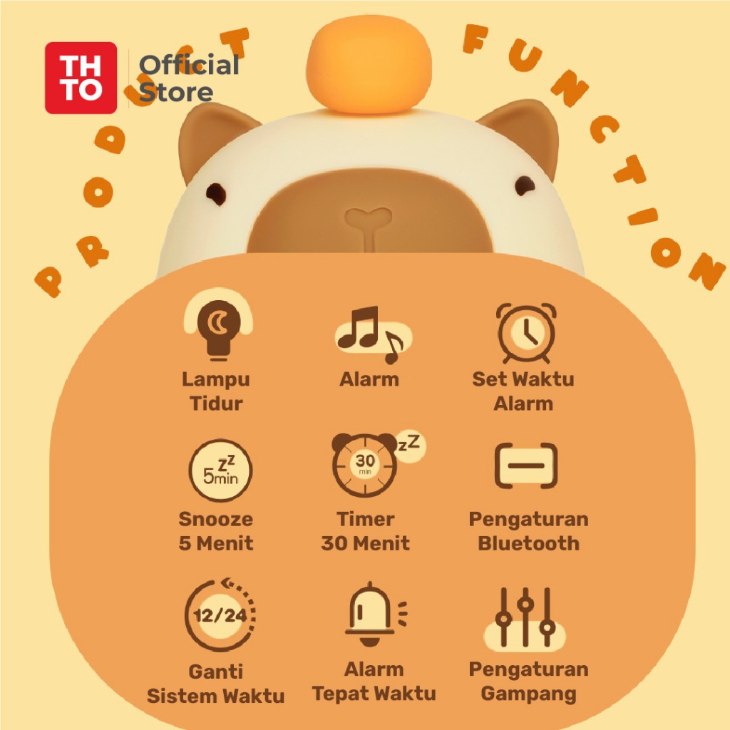 THTO Lampu Tidur Night Light Bluetooth Alarm Jam Digital Squishy Model Capy Clock A096