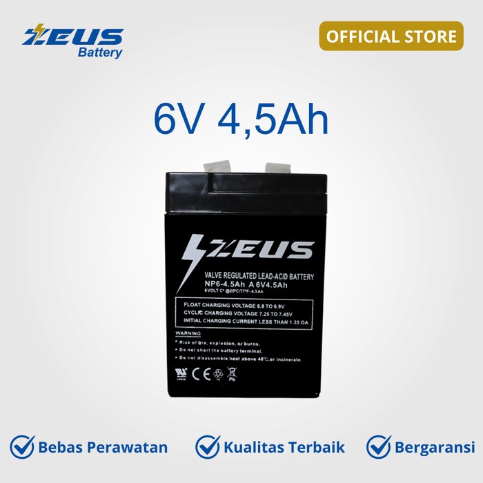 Aki Kering VRLA Zeus 6V 4.5Ah Baterai Lampu Emergency
