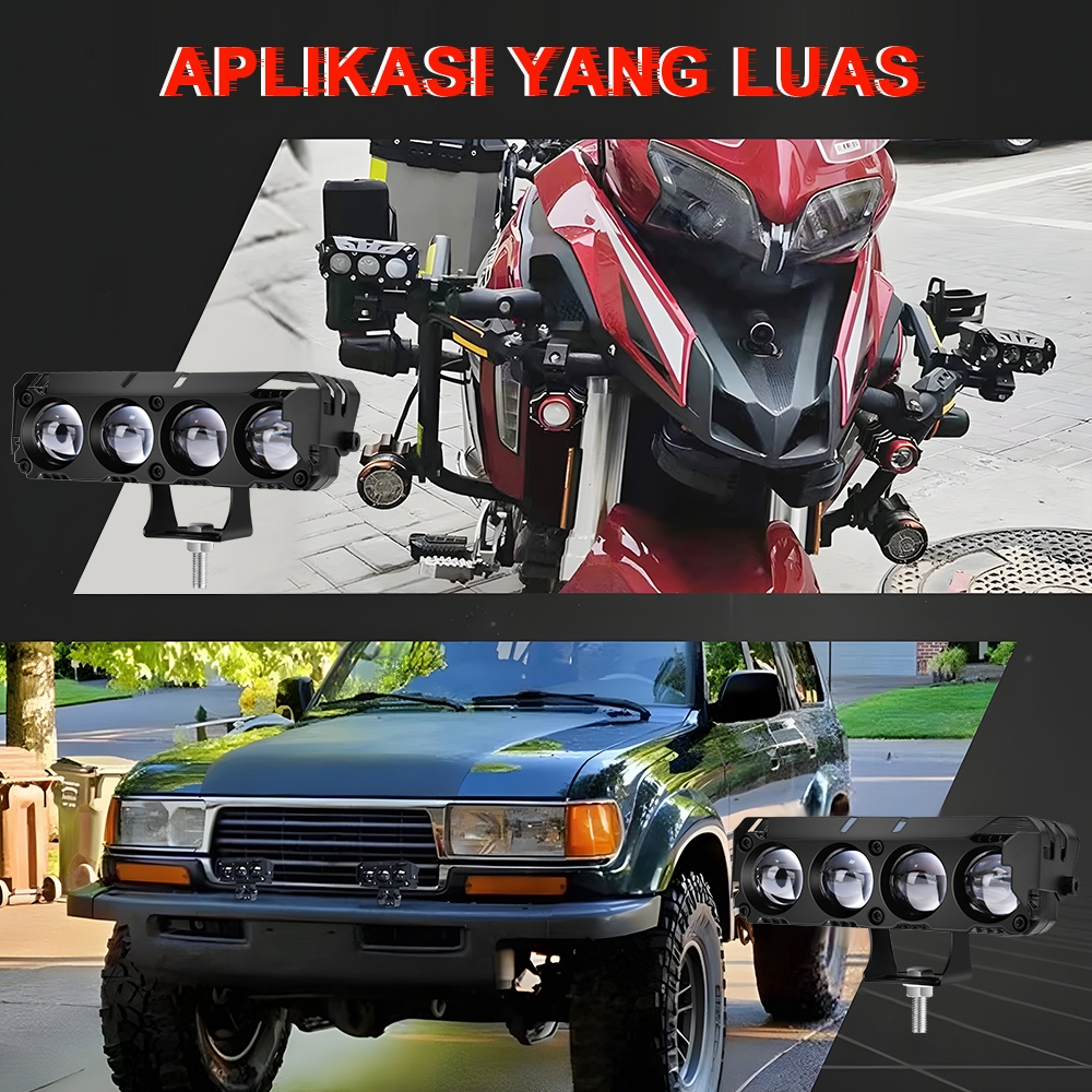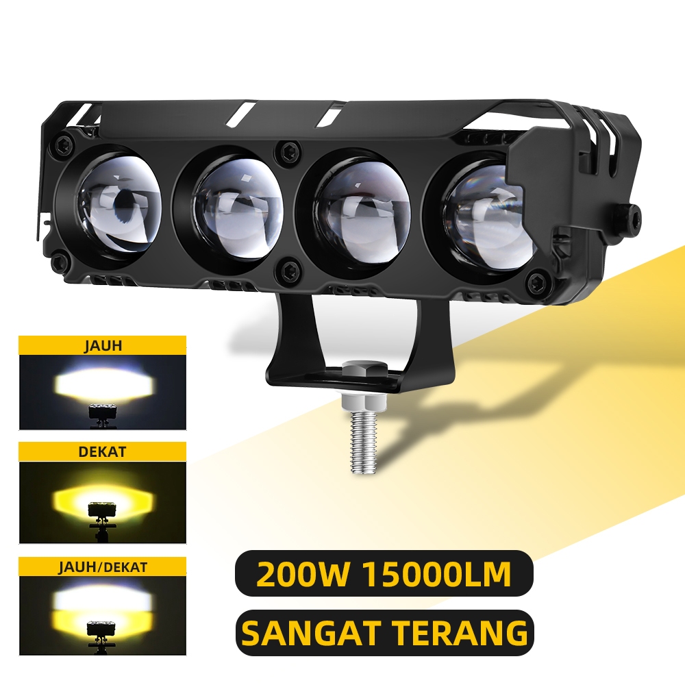 Lampu Tembak Laser SQL 4 Mata Full Alumunium Premium kuning-putih/putih-putih 200W 10000LM IP68 DC 9V-85V Lampu putih 60