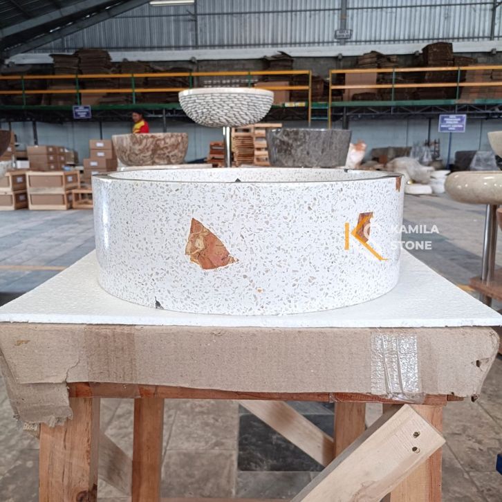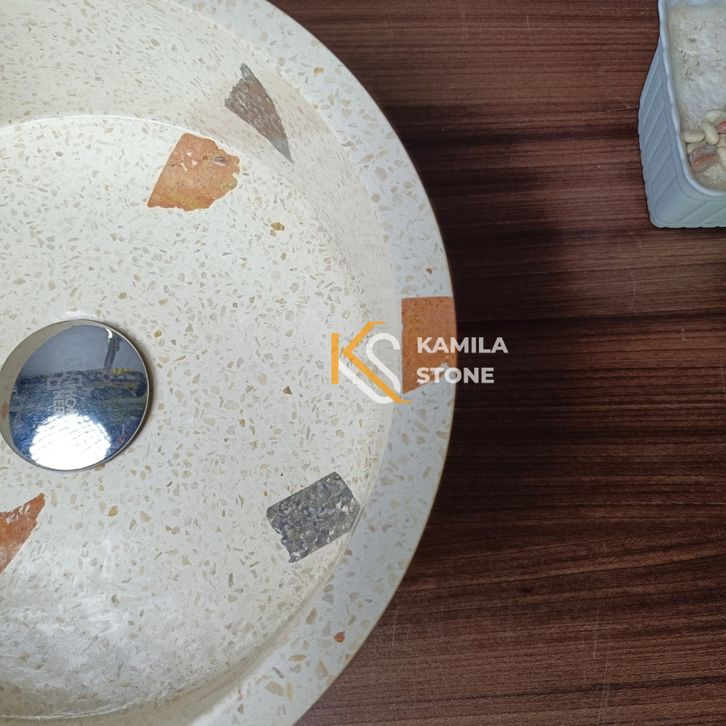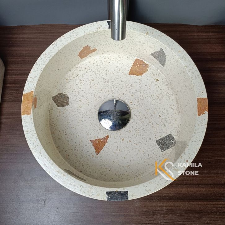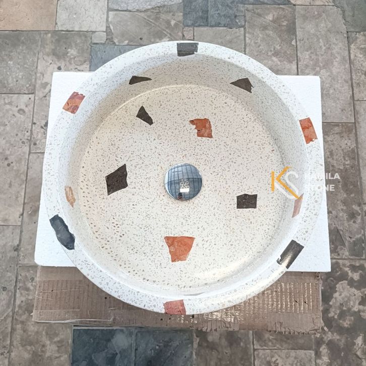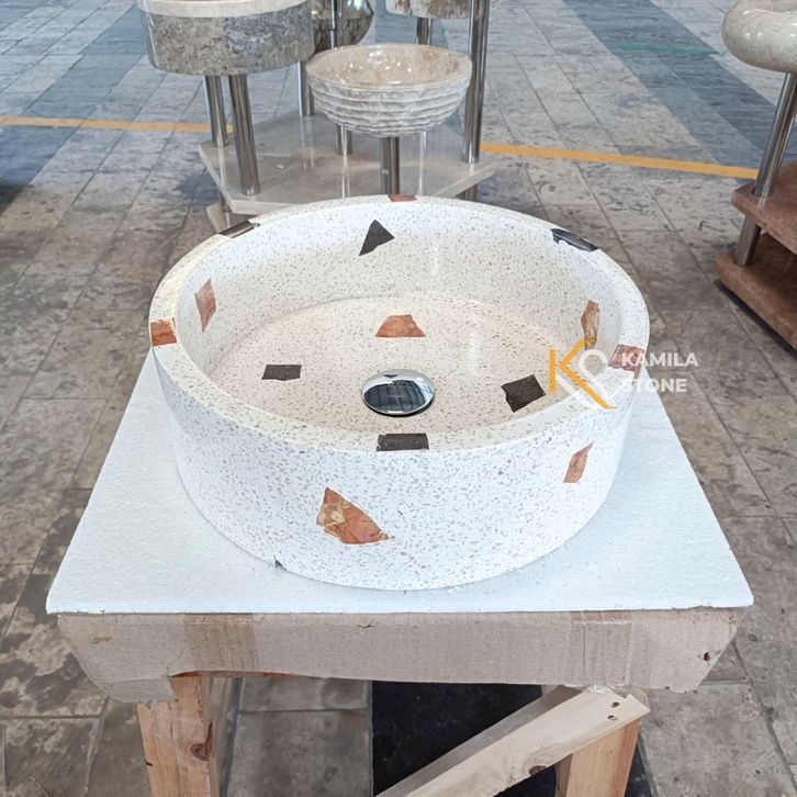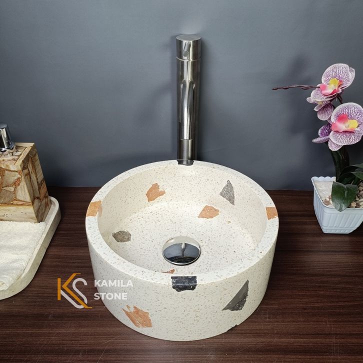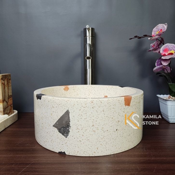 Wastafel Terazzo Bentuk Silinder Motif Diameter 30cm Free Packing Kayu