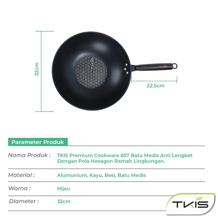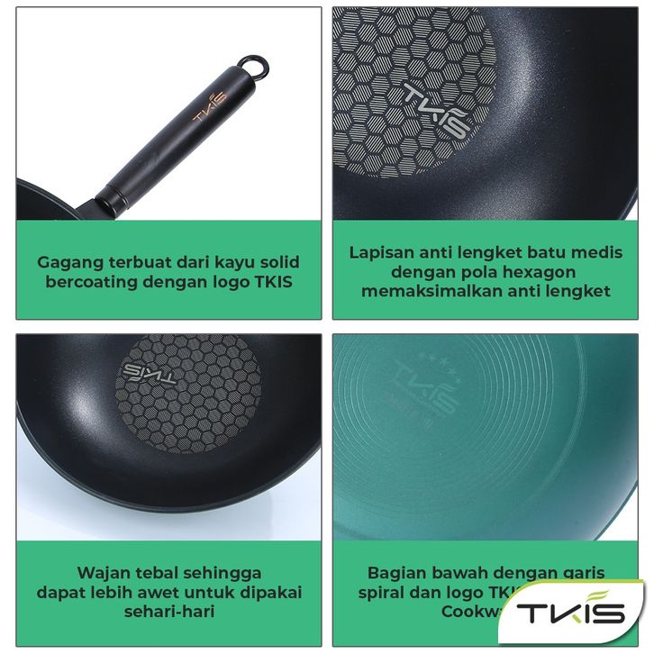 Wajan Wokpan 32cm | Panci Penggorengan Anti Lengket Wajan Hijau TK-857