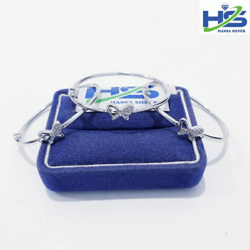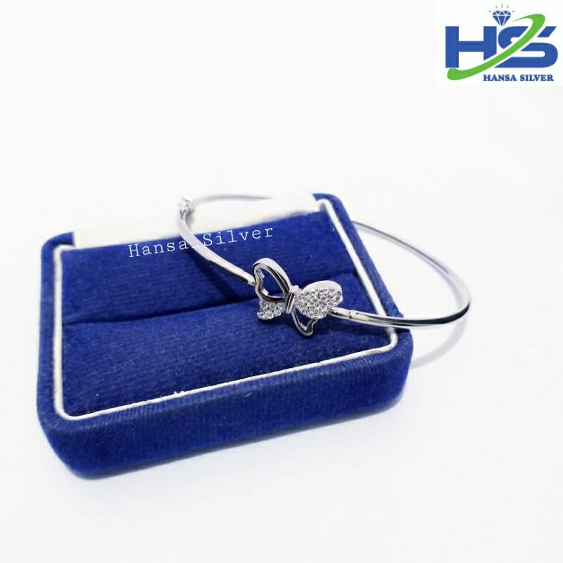 Gelang Perak Asli Silver 925 Lapis Ems Putih Model Bangle Kupu - Kupu Dewasa