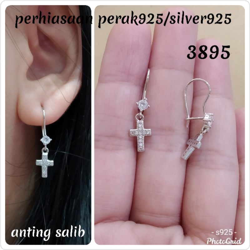 ANTING KAIT GANTUNG SALIB PERAK S925 LAPIS EMAS PUTIH 3895