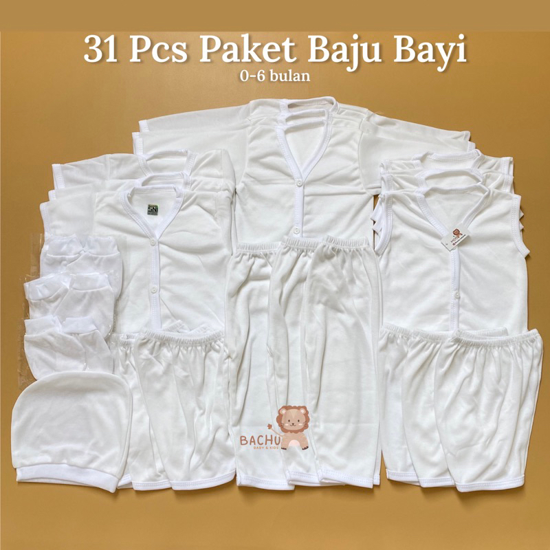 31 Pcs Paket Lahiran Setelan Baju Bayi Baru Lahir Piyama Tidur Newborn Putih celana pendek Lengan panjang