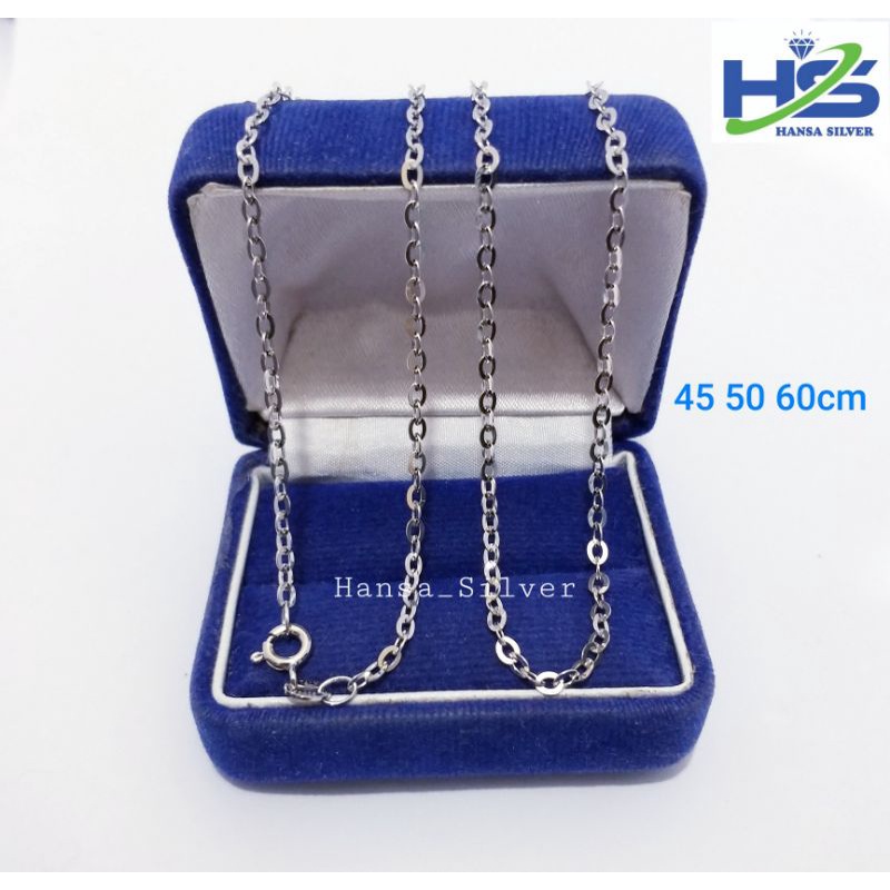 Kalung Perak Silver Asli 925 Lapis Ems Putih Rantai Nori Polos 45 50 60 Cm - Kalung Anti Karat