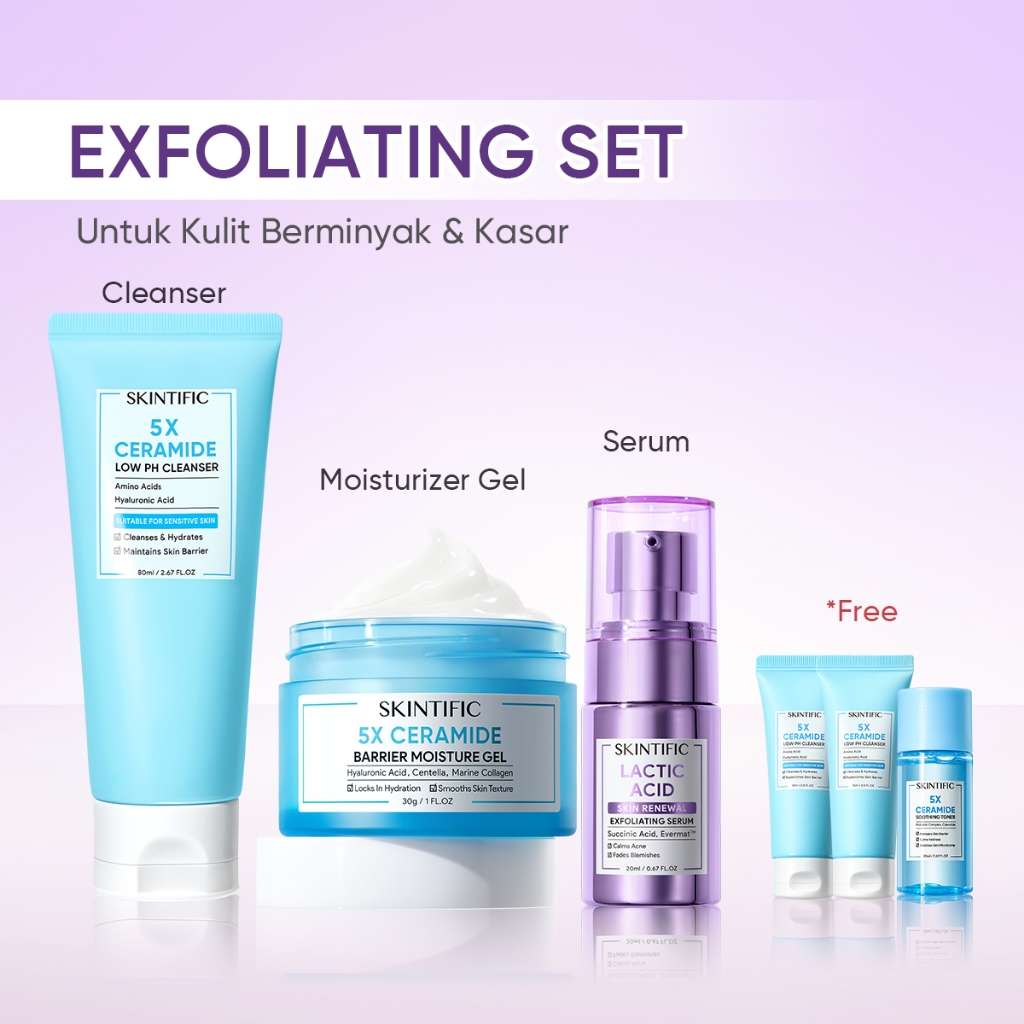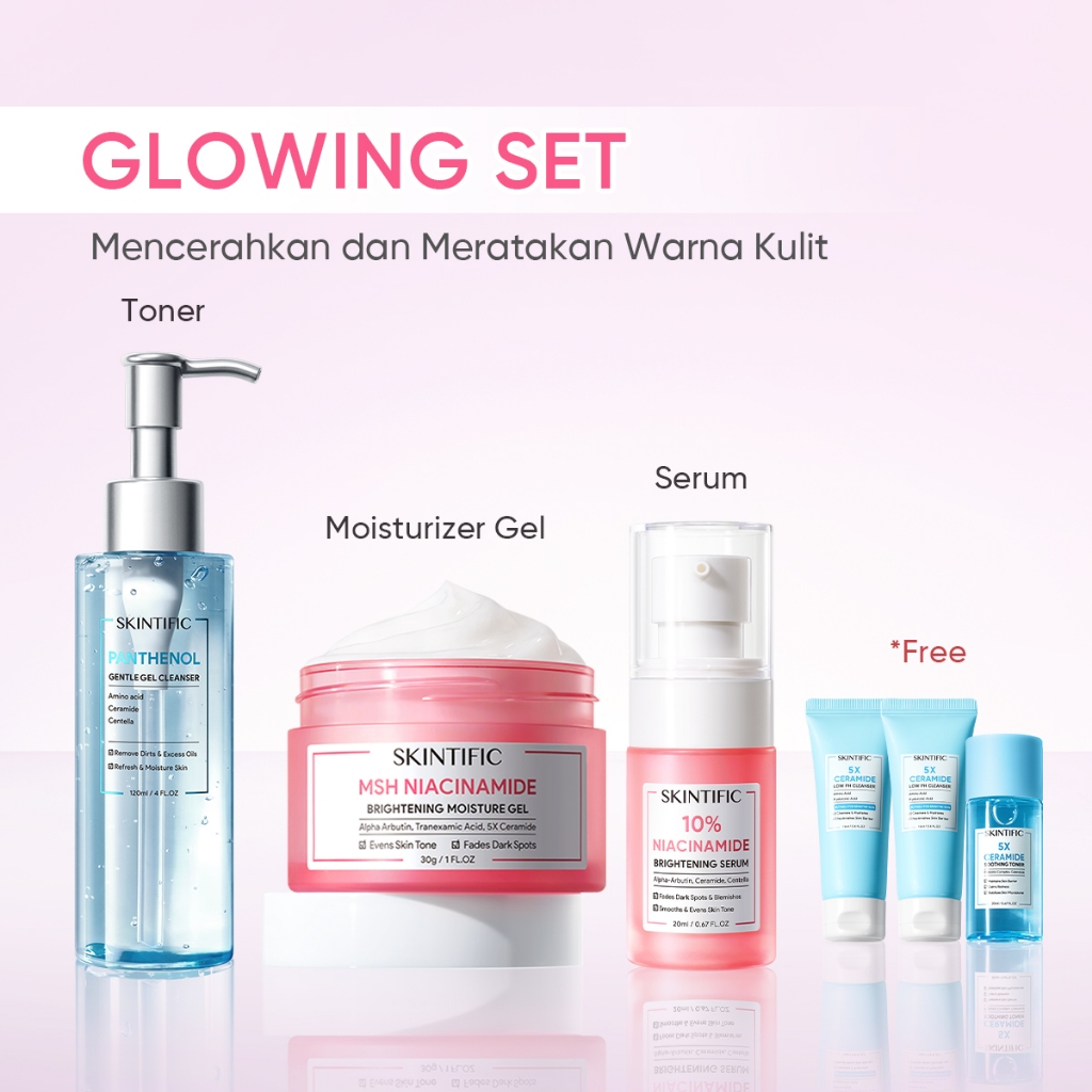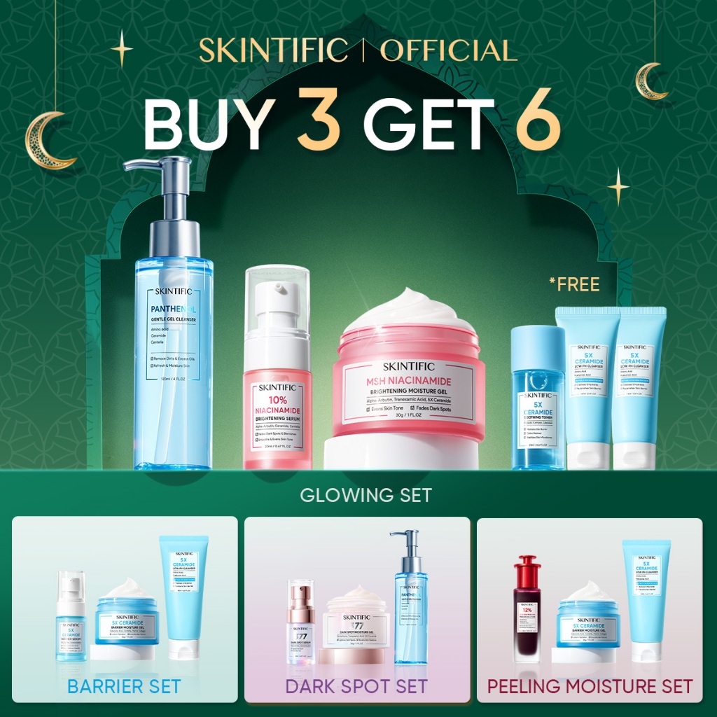 SKINTIFIC OFFICIAL STORE 6pcs Paket-Skincare Set Serum+Moisturizer Gel+Cleanser Day Night Cream Acner Glowing Barrie Ant