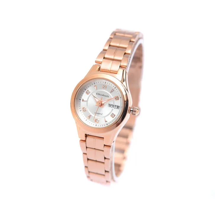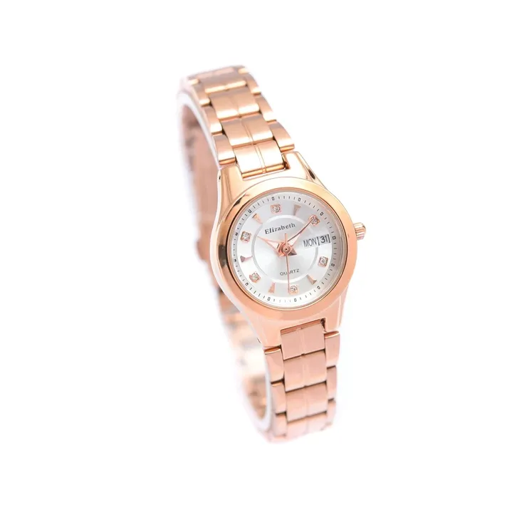 JAM TANGAN WANITA ELIZABETH CHAIN STRAP 2201-0740 ANALOG WATCH STAINLEES STEEL CASE RANTAI ROSE NEW ORIGINAL MURAH