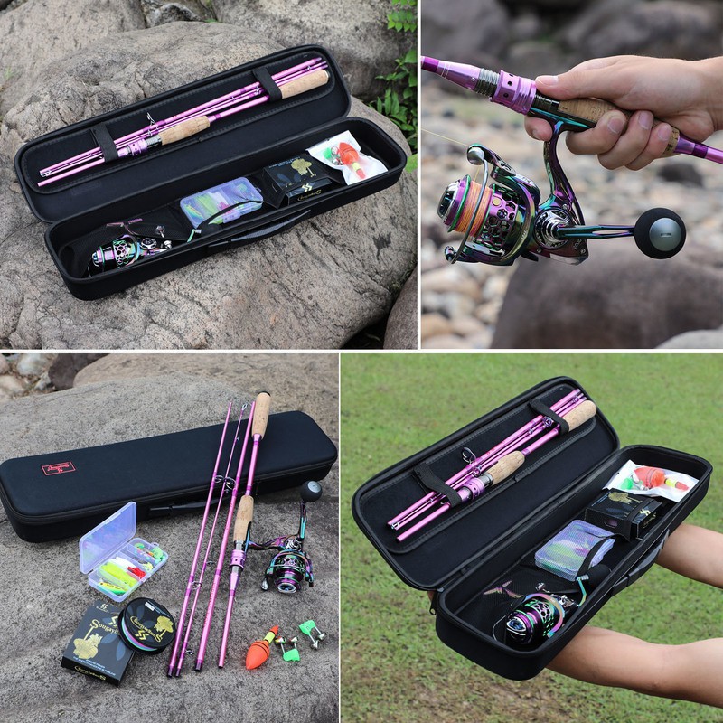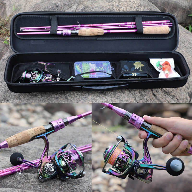 2.1M 4 Bagian Pancing Berputar + Reel Pancing Set 13 + 1BB 5.2: 1 Rasio Gigi Roda Pancing Combo