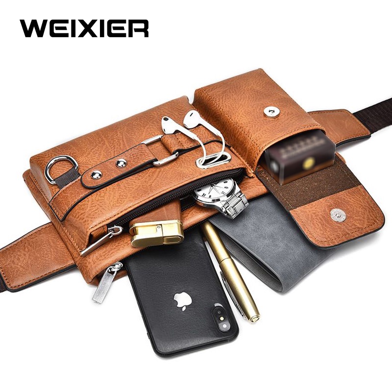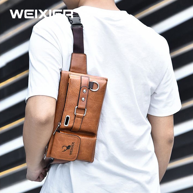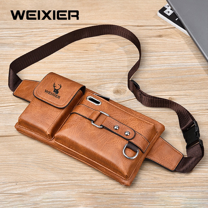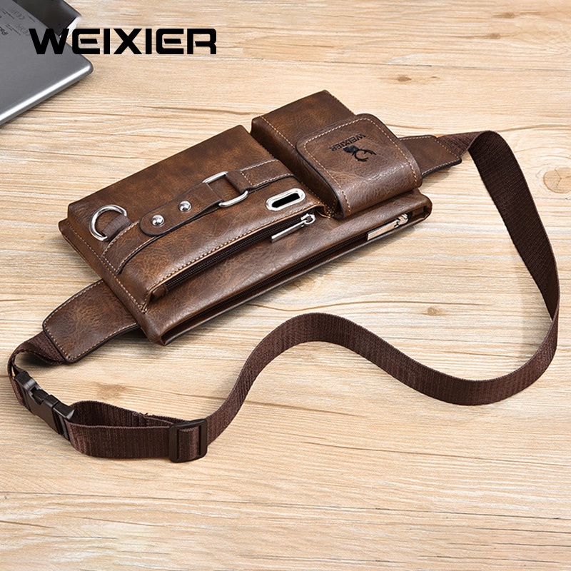 WEIXIER 8110 Tas Selempang Pria Kulit Waistbag Anti Air WK-SBY