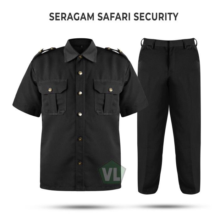 Seragam Security Pdl Pdh Setelan Safary Security / Baju Seragam Safari Satpam Driver Supir - Hitam XXL