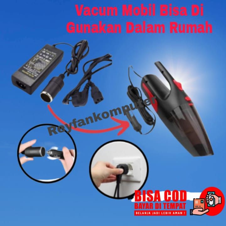 Satu Paket Vacuum Penyedot Debu Mobil & Adaptor Vacum Mobil / Vacuum Cleaner Penyedot Debu Mobil Listrik 12V 120W