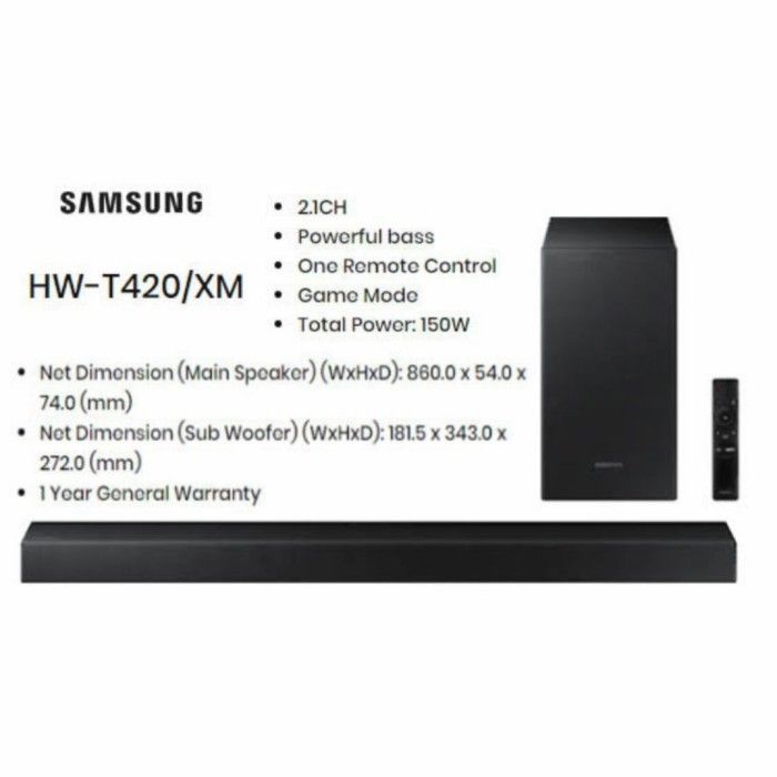 SAMSUNG HW-T420 NEW 2020 WIRELESS SOUNDBAR 2.1CH SURROUND BLUETOOTH DO