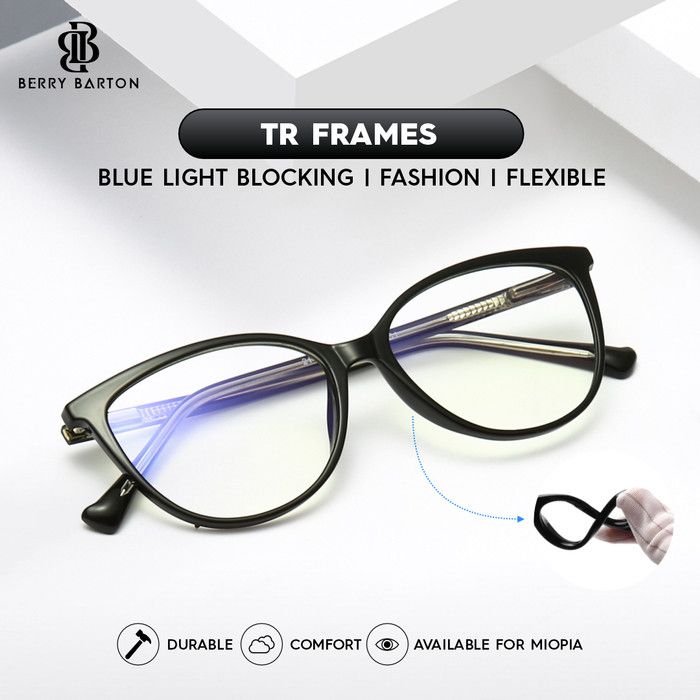 Kacamata Photocromic Pria Plus Minus Kacamata Cat Eye Elastis Anti Radiasi Blueray Photocromic Minus 214 - Black Bluera