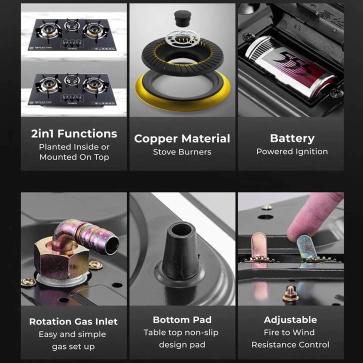 NIKO Kompor Gas Tanam Bahan Kaca - Niko Glass Stove Reflection Series