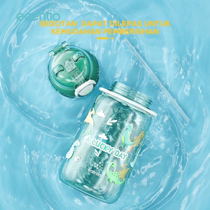 Ecentio Botol Minum Anak 750ml Dengan Sedotan Anti Tumpah Botol Air BPA Free Pola Dinosaurus Berkualitas Premium Trend