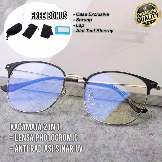 Kacamata Anti Radiasi Sinar UV HP Komputer Photocromic Cowok Cewek Unisex Free Case Berkualitas Premium