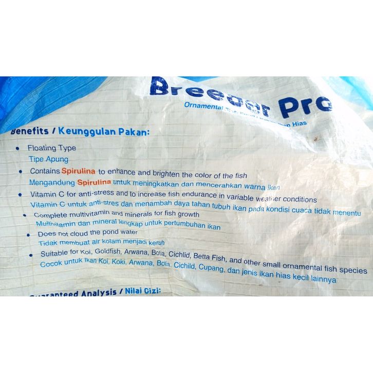 1KG PAKAN IKAN KOI / KOKI/ ARWANA/ IKAN HIAS/ BREEDER PRO ORINAL
