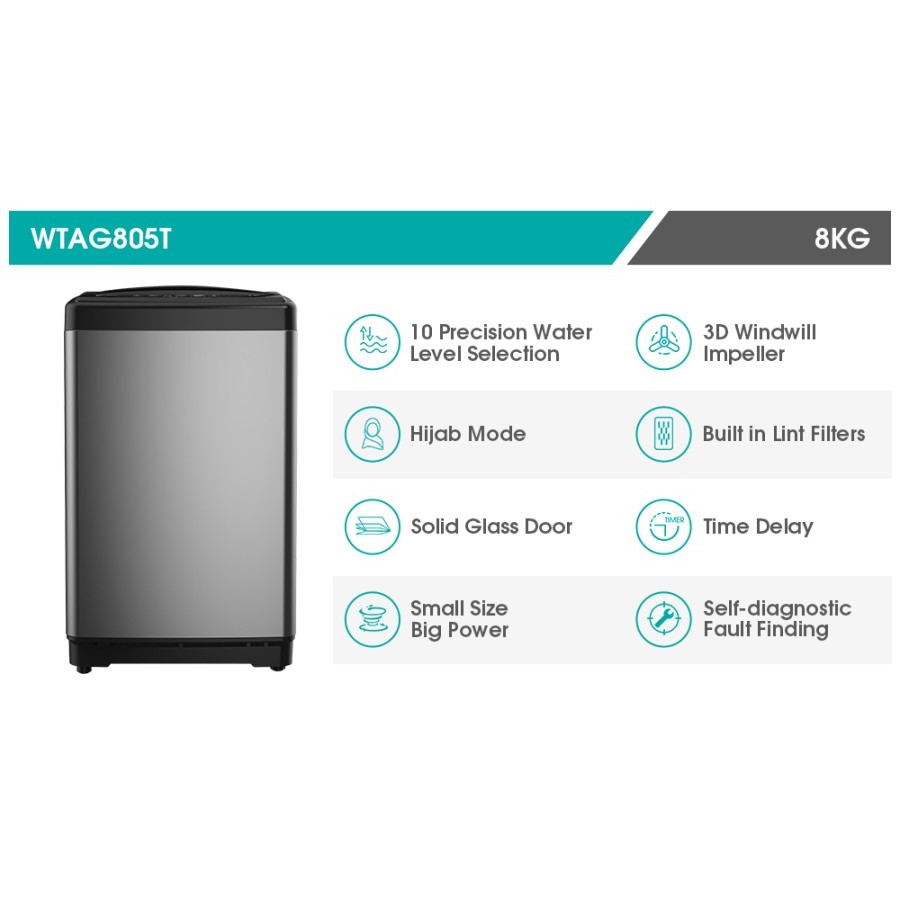 HISENSE MESIN CUCI 1 TABUNG T0P LOADING 8 KG WASHING MACHINE WTAG805T