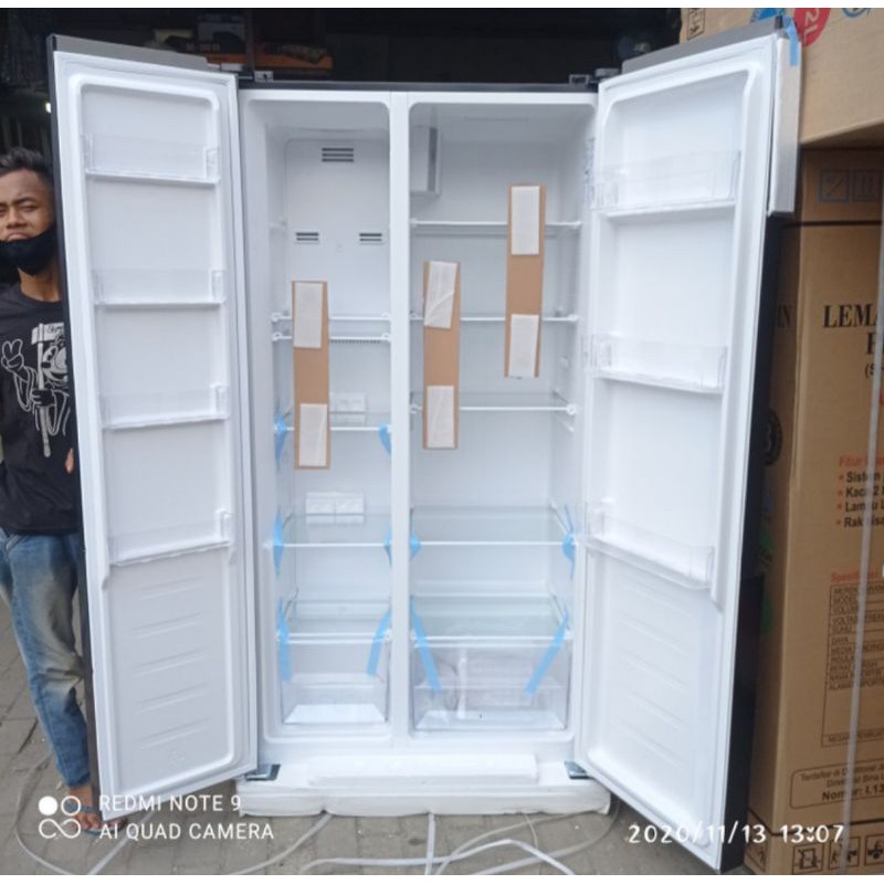 KULKAS GEA SIDE BY SIDE G2D-472 BLACK KACA