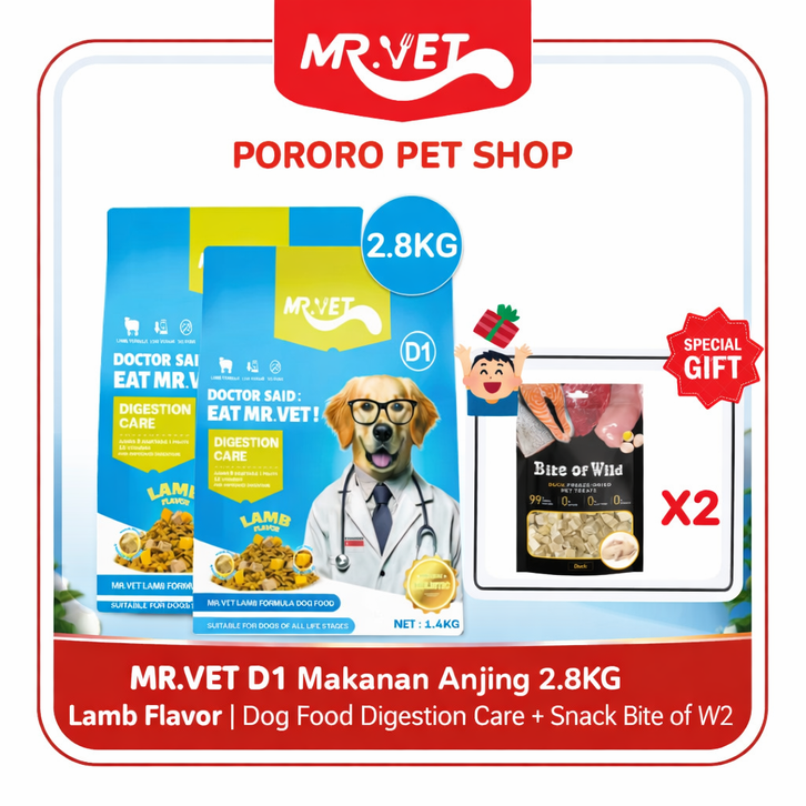 [Mall] MR.VET D1 Makanan Anjing 2.8KG Lamb Flavor | Dog Food Digestion Care + Snack Bite of Wild x2
