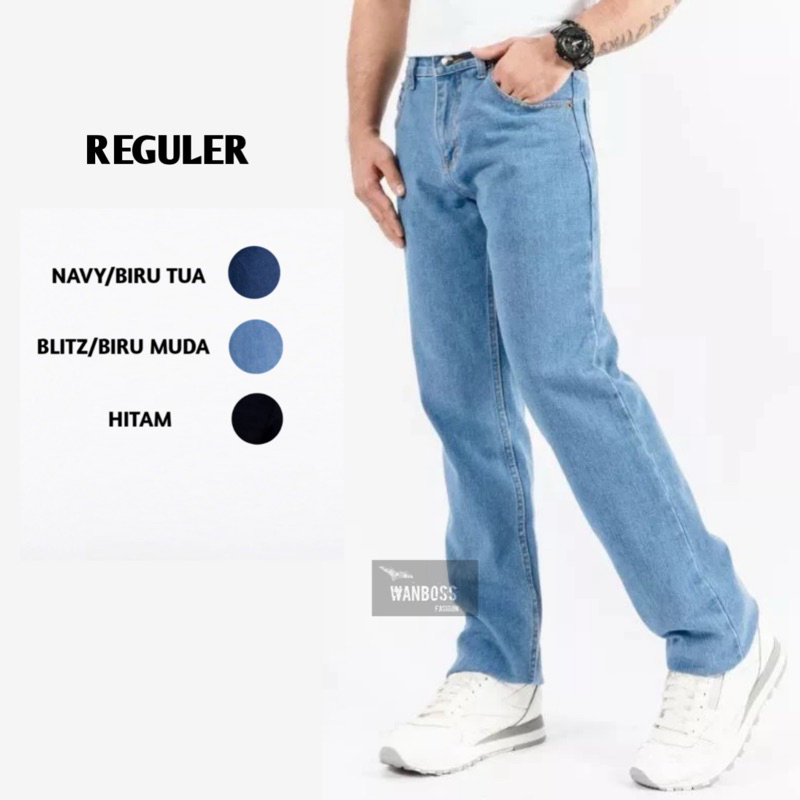 Celana Jeans Standar Pria Jins Jean Panjang Laki Cowok Dewasa Standar Polos Distro