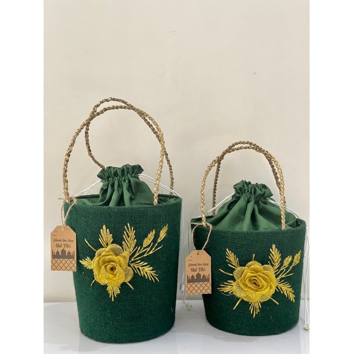 (TERLARIS)Tas Hampers EMBER GONI SULAM BUNGA GOLD GRATIS HANGTAG COKLAT tas parcel anyaman goodiebag souvenir lebaran