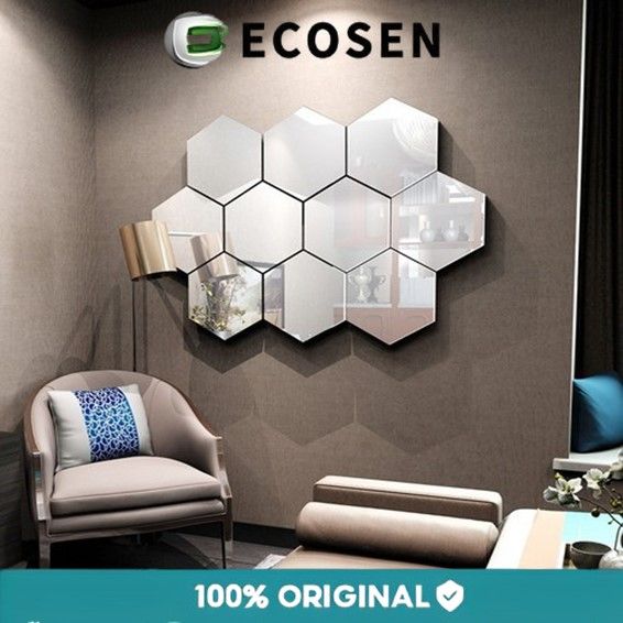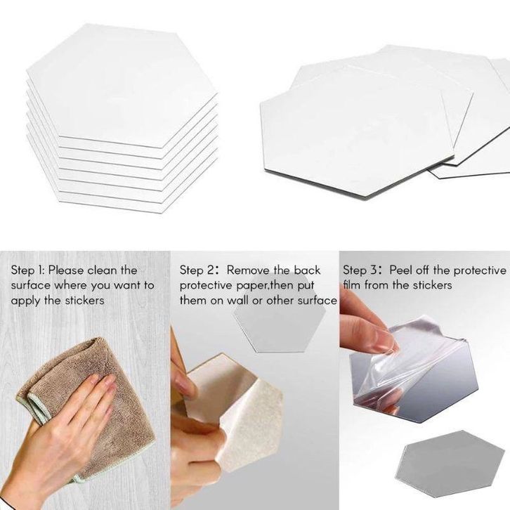 Stiker Cermin Dinding Hexagonal Anti Pecah Segi Enam (Isi 10pcs) Mirror Wall Decoration Sticker Acrylic Cermin