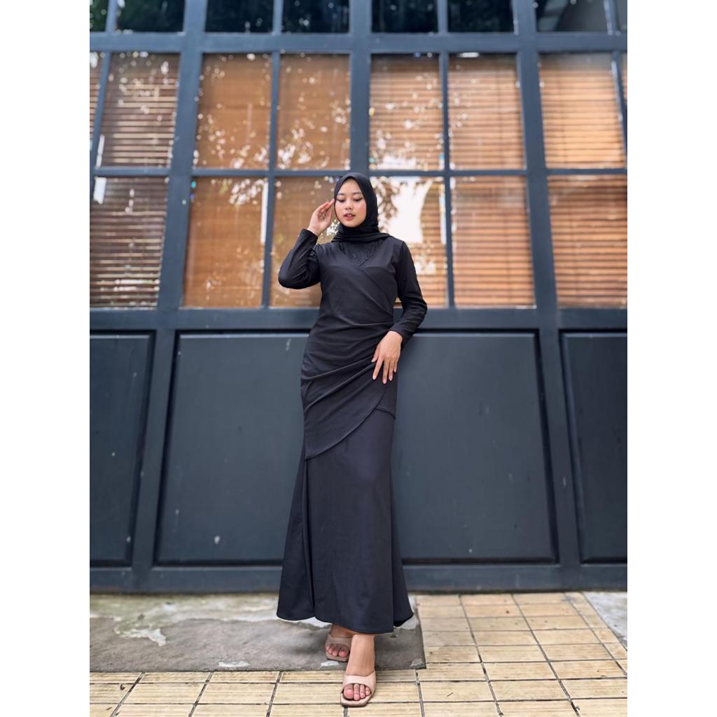 QUEENSYA DRESS GAMIS MALAYSIAN KNIT BRUKAT MODEL SIMPLE ELEGAN MEWAH PESTA TERBARU 2024