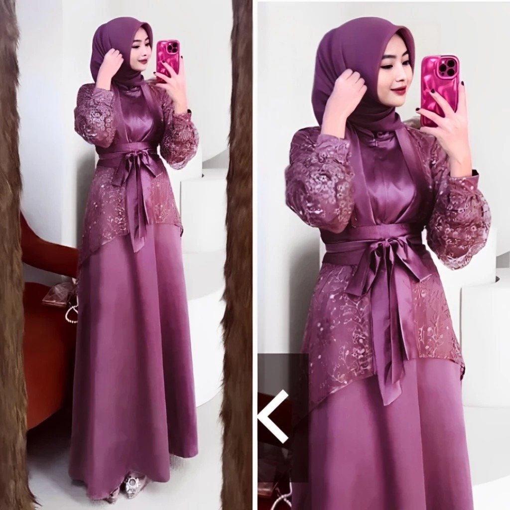BURGUNDY - VELOXA DRESS LEBARAN 2025 KONDANGAN INNER BELT OUTER M L XL XXL PREMIUM JUMBO MEWAH GAMIS MUSLIM SATIN BURGUN