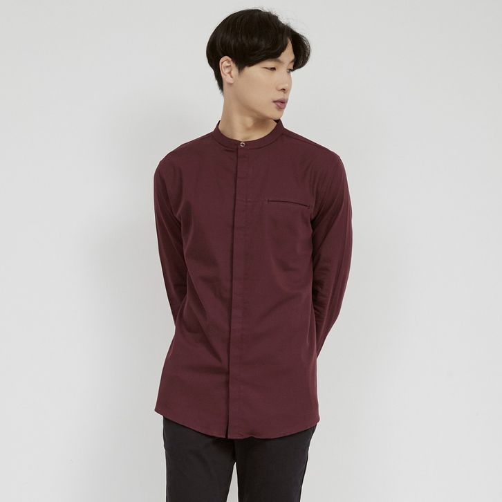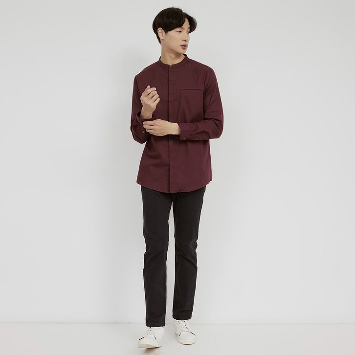(TERLARIS)M231 Kemeja Pria Koko Shanghai Polos Soft Twill Panjang Maroon 1971C