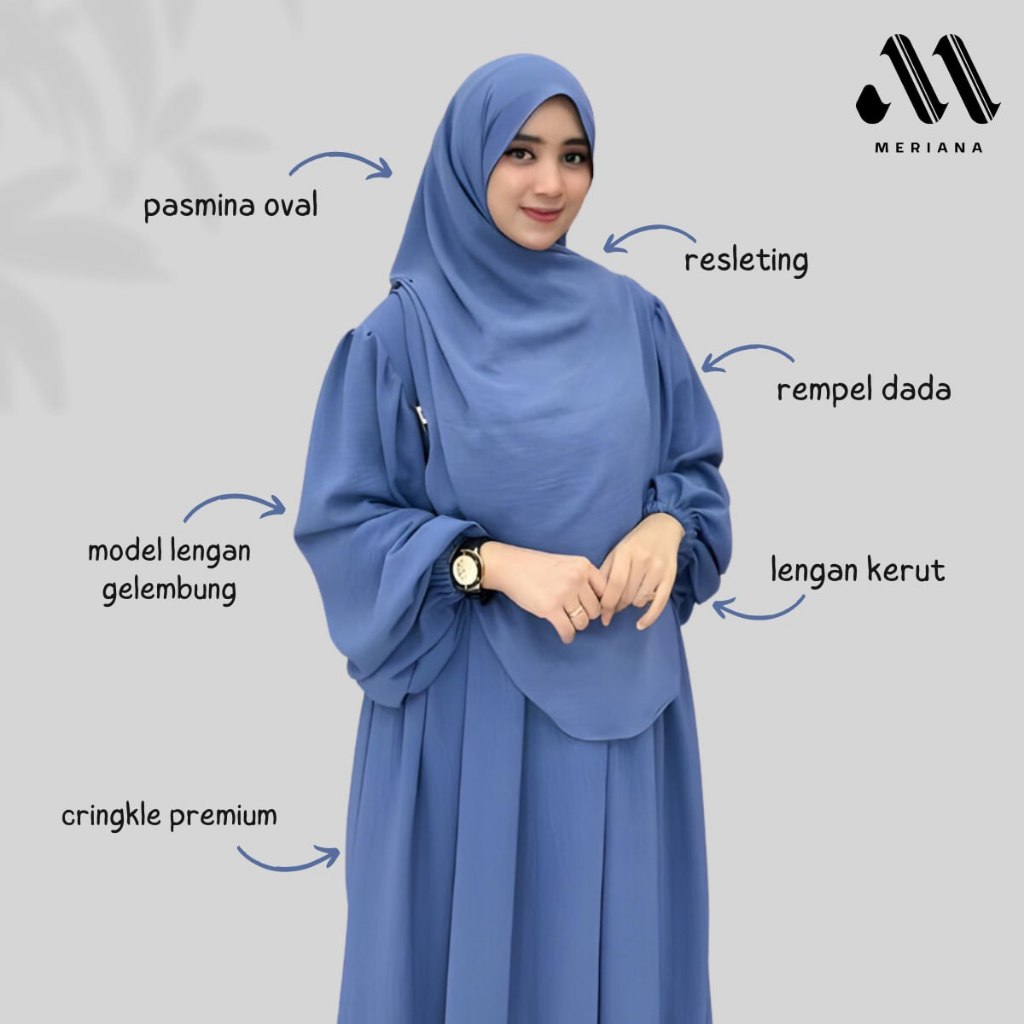 MERIANA GAMIS SET HIJAB PASMINA LEBARAN TERBARU 2024 GAMIS SYARI PASMINA OVAL CRINGKEL AIRFLOW PREMIUM LUNA DRESS VIRAL