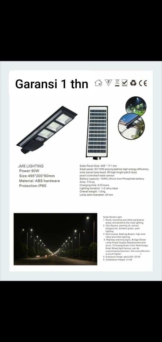 Lampu Jalan Solar Cell SMD 90 Watt / PJU Tenaga Surya 90Watt 90W 90 W - Putih