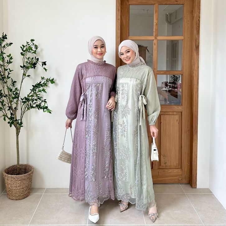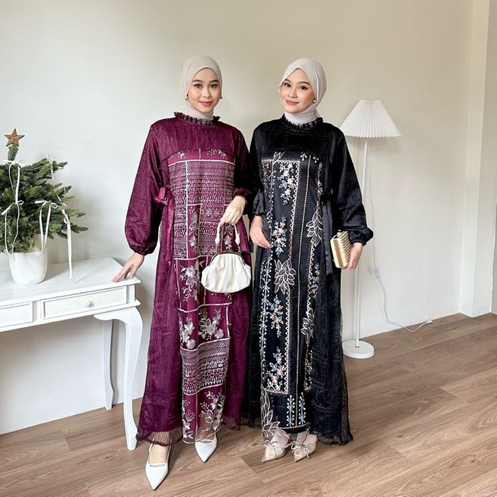 (TERLARIS)Dezhaf - Zoraya Dress / Dress Lebaran / Dress Brukat / Outfit Lebaran