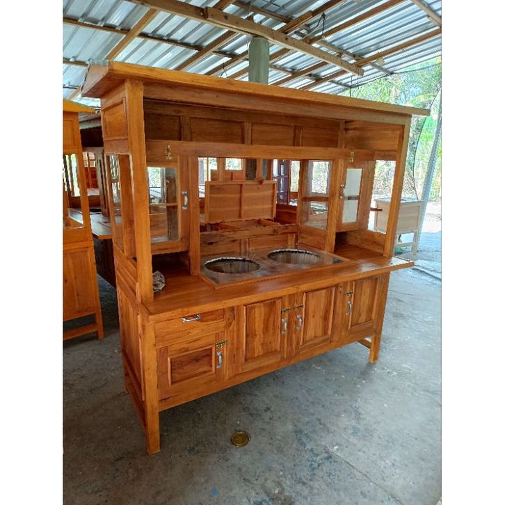 gerobak bakso dan mie ayam dua etalase kayu jati