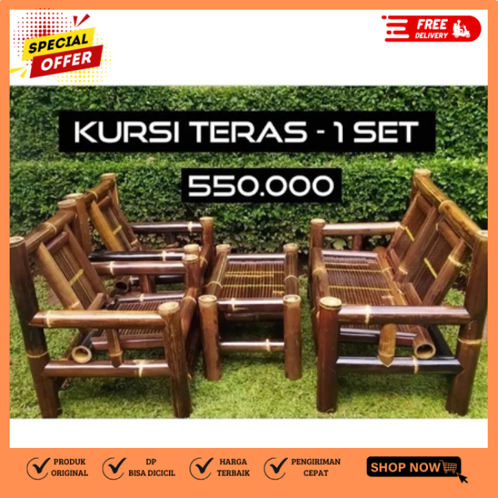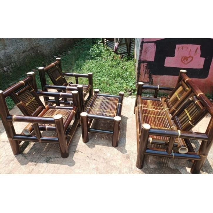 KURSI BAMBU HITAM 1 SET SESUAI GAMBAR 4 BARANG READY TANPA PO