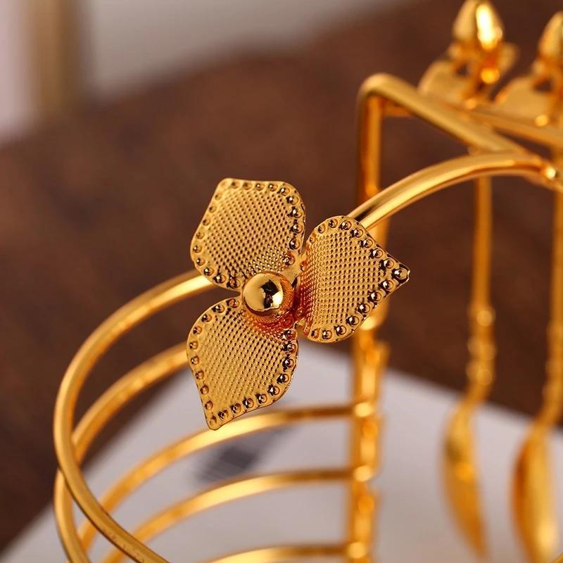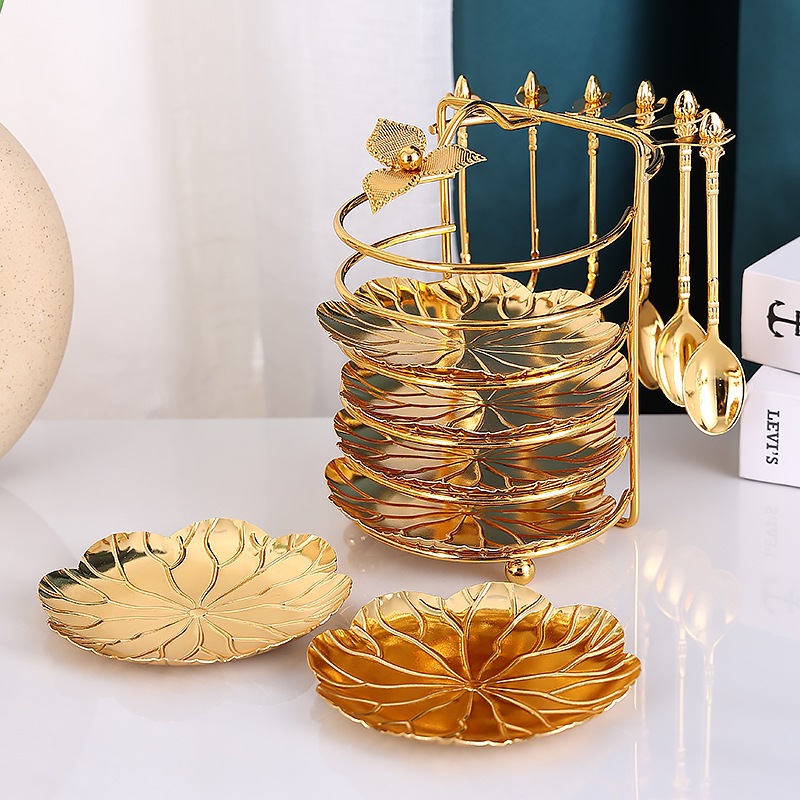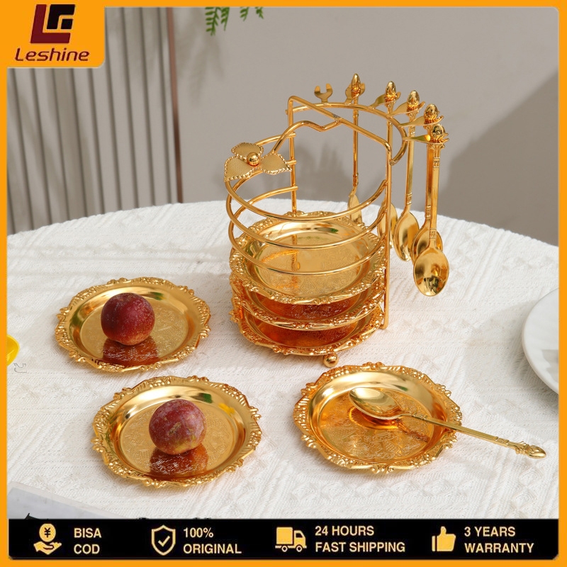 Leshine Set Piring Kue & Buah dengan Stand Stainless Emas 6pcs, Hiasan Meja Mewah, Unik untuk Dessert & Permen