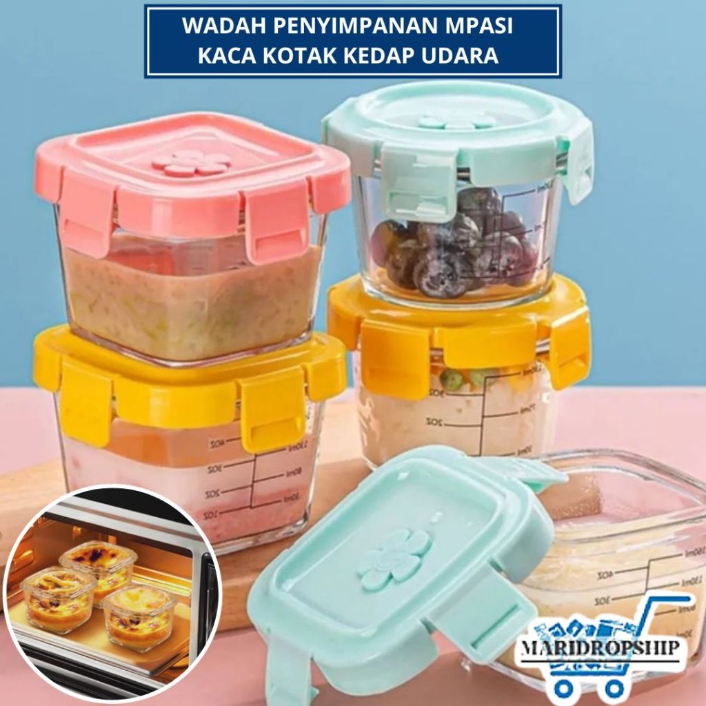 Tempat Wadah Penyimpanan Makanan Mpasi Ka Kotak Makan Baby Bayi BOX Anak Glass Food Container Kedap Udara Air Kulkas Ove