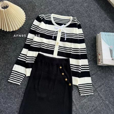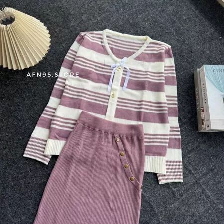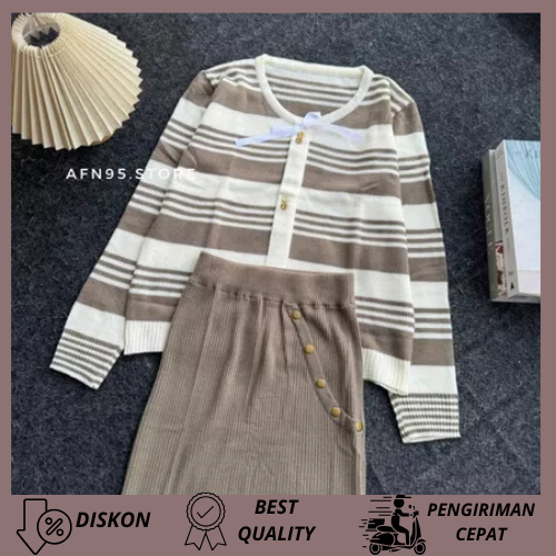 ONESET ROK JULIANA CARDIGAN KANCING VARIASI PITA KNIT KOREAN STYLE ONE SET WANITA KEKINIAN KOREA IMPORT VIRAL TERBARU