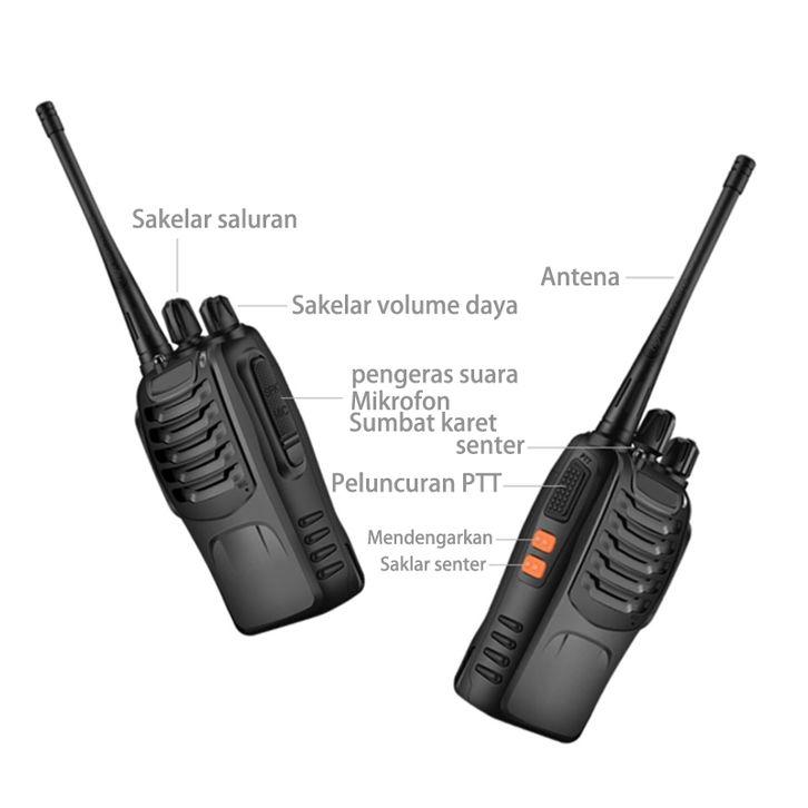 Koomas 2Pcs Ht Walkie Talkie Jarak Jauh 10km(Max) UHF400-520MHz Ht Wlan Handy Talky Waterproof Portable With Charger