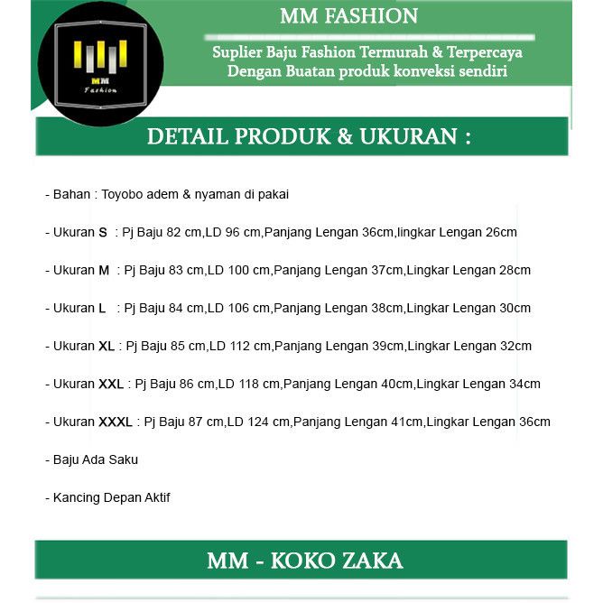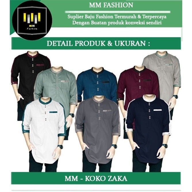 Baju Lebaran Koko Zaka Lengan 3/4 MM Fashion (MM) Ukuran S-3XL Matt Katun Toyobo Baju Koko Qurta Pria Baju Koko atasan