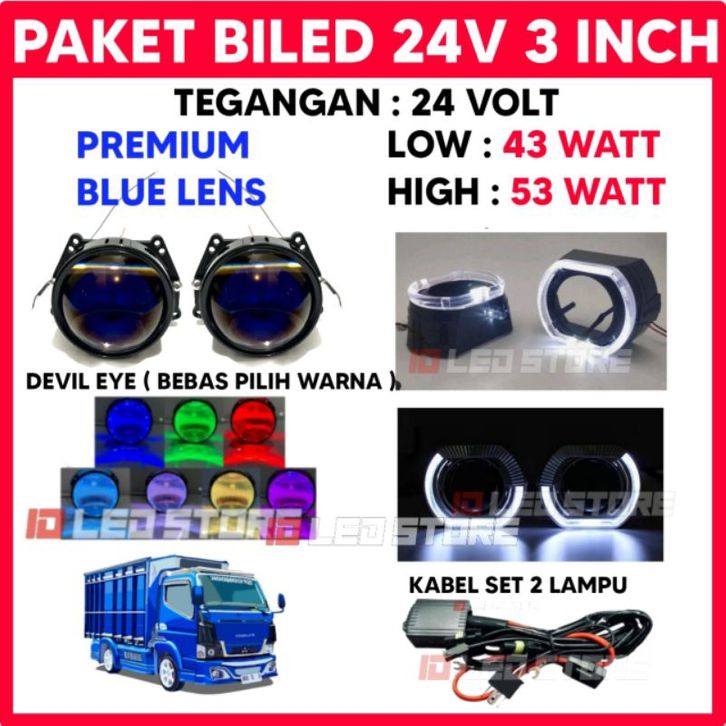 Paket Lampu utama projie Biled 3 inch 24 volt 106 Watt semi laser cocok untuk Mobil truk bis