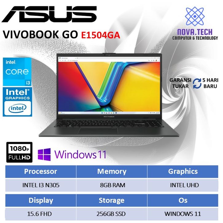 Asus Vivobook Go E1504GA core i3 N305 Ram 8gb 256gb Ssd Windows 11 15.6 FHD
