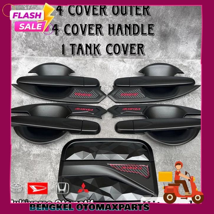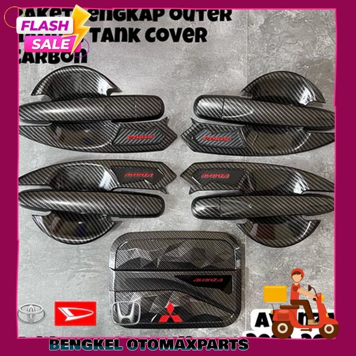 Paket Outer Handle Tank Cover Avanza Xenia 2012 2021 Carbon Lengkap