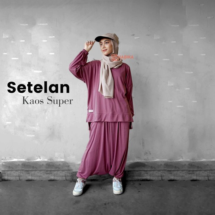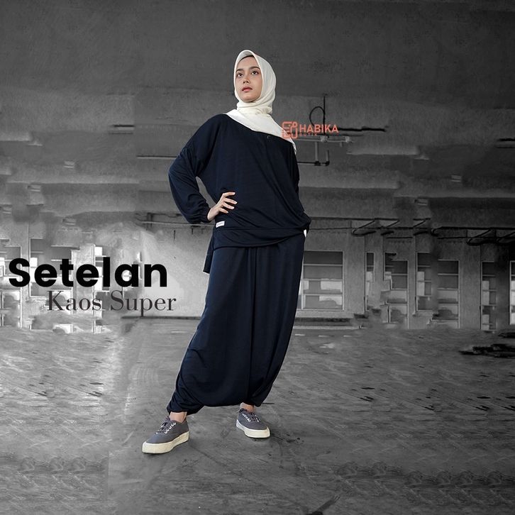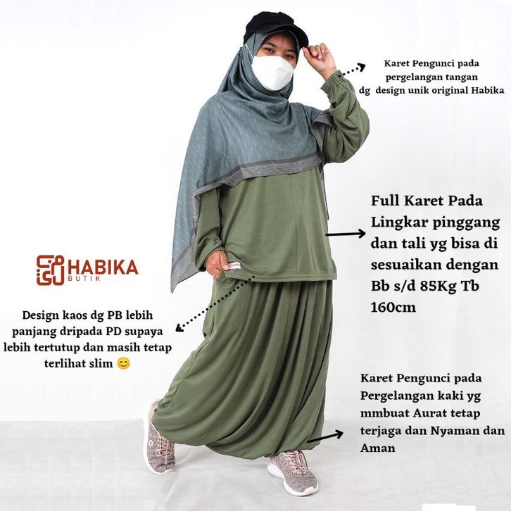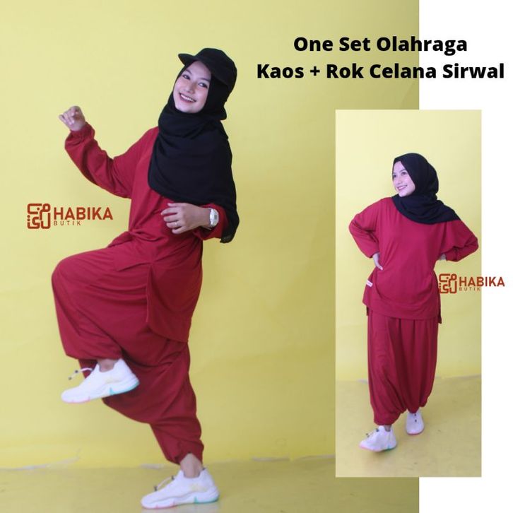 Setelan Kaos Olahraga wanita kaos+rok celana 1 set Lengan Panjang syar'i bahan double super