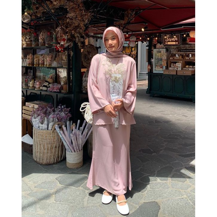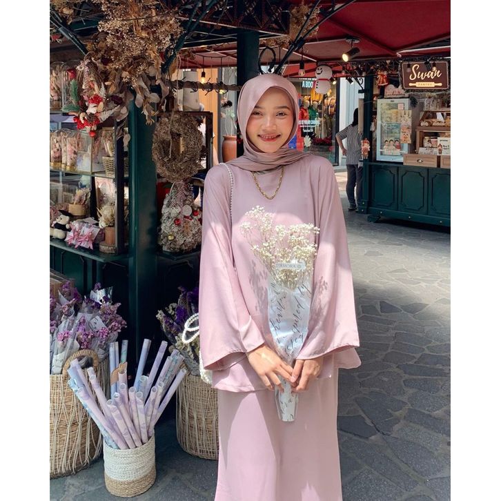 Baju Lebaran 2025 Alesha Kurung One Set One Set Kurung Setelan Silk Baju Wanita Terbaru Kondangan Pesta Lebaran